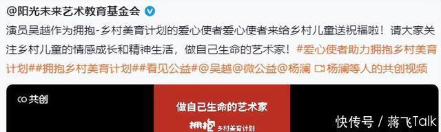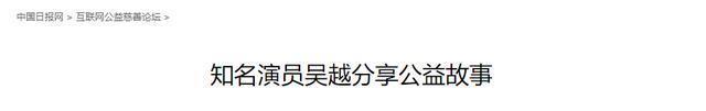 部分参考资料: 新浪微博|吴越 中国日报网|知名演员吴越分享公益故事 新浪微博|阳光未来艺术教育基金会:演员吴越作为拥抱乡村美育计划爱心使者